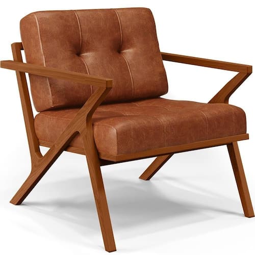 A Poltrona Decorativa Sala De Estar Com Cintas De Corano Laís B04 Couríssimo Camel - Lyam Decor se sobressai em qualquer ambiente, permite diversas combinações harmônicas e ainda proporciona muito aconchego. O match do encosto com percintas de couro com o revestimento em Couríssimo, somado à estrutura em madeira com pegada geométrica garantem extrema idade e personalidade para sua decoração.