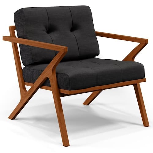 A Poltrona Decorativa Sala de Estar com Cintas de Corano Laís B04 Linho Chumbo - Lyam Decor se sobressai em qualquer ambiente, permite diversas combinações harmônicas e ainda proporciona muito aconchego. A mistura das percintas de corano ao revestimento convencional dela, somados à sua estrutura em madeira, na cor nozes, com um ar mais geométrico, garantem extrema originalidade e personalidade para sua decoração.