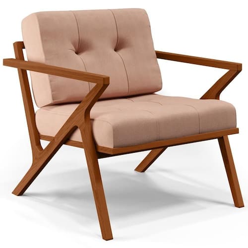 A Poltrona Decorativa Sala de Estar com Cintas de Corano Laís B04 Linho Rosê - Lyam Decor se sobressai em qualquer ambiente, permite diversas combinações harmônicas e ainda proporciona muito aconchego. A mistura das percintas de couro com o revestimento convencional dela, somados à sua estrutura em madeira, na cor nozes, com um ar mais geométrico garantem extrema idade e personalidade para sua decoração.