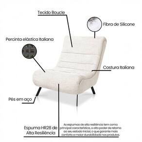 Poltrona Com Pés Em Ferro Tecido Bouclé Vancouver – Lucadi Off White - Branco