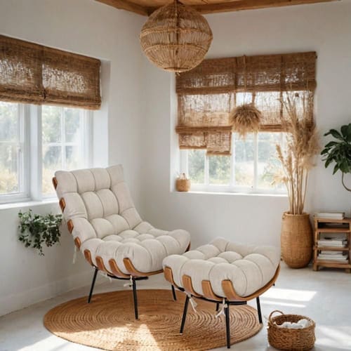 - A poltrona chegará montada, fixar apenas as madeiras da braça.
