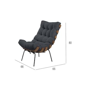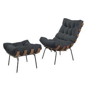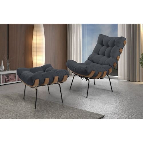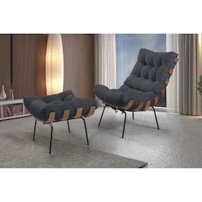 Poltrona com Puff Costela Linho Grafite - Cinza