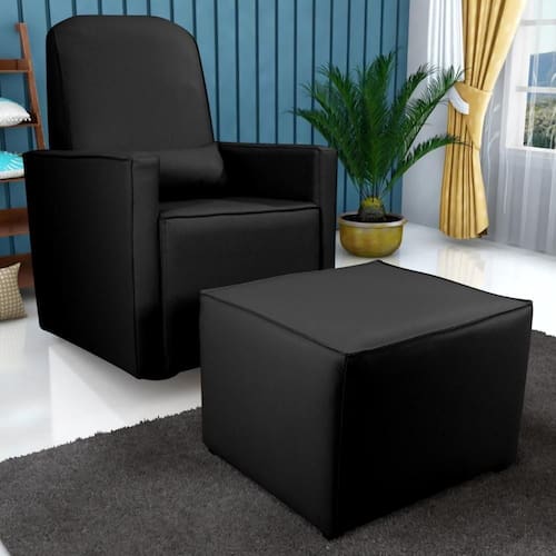 Poltrona Com Puff Para Maternidade Ibiza Sintetico Preto