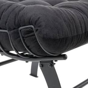 Características: Estrutura de Aço com Pintura Eletrostática: Garante resistência e durabilidade, proporcionando uma base sólida para o conforto. Almofada de Tecido Oxford: Confortável e fácil de limpar, a almofada adiciona um toque aconchegante e charmoso ao conjunto. Dimensões Ideais: A poltrona possui 100 cm de comprimento, 61,5 cm de largura e 85 cm de altura, enquanto o puff tem 54 cm de comprimento, 61,5 cm de largura e 41 cm de altura, proporcionando um espaço amplo para relaxar. Cor Preto Moderno: O tom preto elegante e atemporal se adapta facilmente a diversos estilos de decoração, adicionando um ar de sofisticação ao ambiente. Fácil de Limpar: Para manter a beleza deste conjunto, basta utilizar sabão ou detergente neutro com uma esponja macia, evitando o uso de solventes, objetos cortantes ou abrasivos.