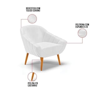 A poltrona Giovana é uma peça indispensável para momentos de descanso depois de um dia longo de trabalho. E não há nada melhor que poder relaxar em um móvel de extremo conforto não é mesmo! Afinal ela dará aquele toque de perfeição ao seu ambiente. Conta com uma estrutura reforçada em madeira eucalipto que oferece alta resistência e qualidade ao móvel. Produzida com Pés Palito Castanho que suportam até 120 kg, seu estofamento é com espuma de densidade D-23, revestido em tecido Corano que contribui para que o assento fique firme por mais tempo. Sua durabilidade e conforto é seu diferencial. Você também amou? Então, é só escolher a Poltrona que tem mais a ver com a sua decoração.