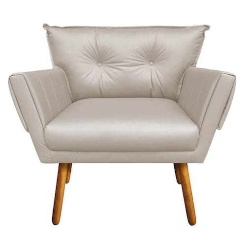 Poltrona Anitta Corino Bege Pés Palito Castanho D'Rossi