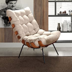 Produto seguro para até 120kg Acompanha Almofadas extras: Não Acompanha Puff: Não Almofada do assento: Não Possui Almofada do encosto: Não Possui Altura do assento até o chão: 50 Altura do Encosto: 85 Ambiente Principal: Sala de Estar Complexidade da Montagem: Baixa: pode ser montado por uma pessoa sozinha Cor: Bege Cor do Produto: Bege Design Assinado: Sim Encosto para a Cabeça: Não Estampado: Não Extensível: Não Itens Inclusos: 1 Poltrona, Pés Linha ou Coleção: Costela Material dos Pés: Ferro Modelo de Poltrona: Fixo Necessita Montagem: Sim Origem do Produto: Nacional Peso: 18 kg Possui Percintas Elásticas: Não Possui Pés: 02 Possui Rodízio: Não Recomendações de Uso, Manutenção e Limpeza: Limpeza e cuidados: pode ser utilizado aspirador de pó, escova com cerdas macias ou limpeza a seco. Não utilizar produtos químicos, abrasivos ou limpeza a vapor. Evitar exposição prolongada ao sol. Sistema de Montagem: Apenas Enroscar os pés Suporta Até (kg): 120 Tecido Predominante: Linho Tipo de Assento: Fixo Tipo de Encosto: Fixo Tipo de Poltrona: Decorativa