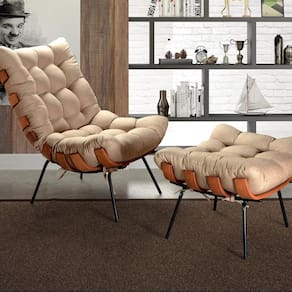 Itens inclusos: 1 Poltrona 1 Puff já montados e prontos para uso. Acompanha Almofadas extras: Não Acompanha Puff: Sim Almofada do assento: Não Possui Almofada do encosto: Não Possui Altura do assento até o chão: 50 Altura do Encosto: 85 Ambiente Principal: Sala de Estar Complexidade da Montagem: Baixa: pode ser montado por uma pessoa sozinha Cor: Marrom Cor do Produto: Marrom Design Assinado: Sim Encosto para a Cabeça: Não Estampado: Não Extensível: Não Itens Inclusos: 1 Poltrona, 1 Puff, Kit Ferragens Linha ou Coleção: Costela Material dos Pés: Madeira Eucalípto Modelo de Poltrona: Fixo Necessita Montagem: Sim Origem do Produto: Nacional Peso: 24 kg Possui Percintas Elásticas: Não Possui Pés: 04 Possui Rodízio: Não Recomendações de Uso, Manutenção e Limpeza: Limpeza e cuidados: pode ser utilizado aspirador de pó, escova com cerdas macias ou limpeza a seco. Não utilizar produtos químicos, abrasivos ou limpeza a vapor. Evitar exposição prolongada ao sol. Sistema de Montagem: Apenas Colocar os pés Suporta Até (kg): 120 Tecido Predominante: Linho Tipo de Assento: Fixo Tipo de Encosto: Fixo Tipo de Poltrona: Decorativa