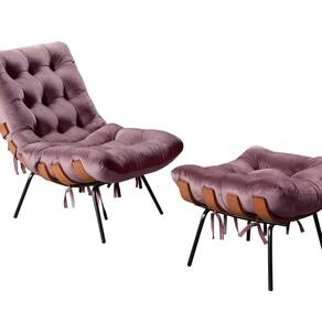 Itens inclusos: 1 Poltrona 1 Puff já montados e prontos para uso. Acompanha Almofadas extras: Não Acompanha Puff: Sim Almofada do assento: Não Possui Almofada do encosto: Não Possui Altura do assento até o chão: 50 Altura do Encosto: 85 Ambiente Principal: Sala de Estar Complexidade da Montagem: Baixa: pode ser montado por uma pessoa sozinha Cor: Roxo Cor do Produto: Roxo Design Assinado: Sim Encosto para a Cabeça: Não Estampado: Não Extensível: Não Itens Inclusos: 1 Poltrona, 1 Puff, Kit Ferragens Linha ou Coleção: Costela Material dos Pés: Madeira Eucalípto Modelo de Poltrona: Fixo Necessita Montagem: Sim Origem do Produto: Nacional Peso: 24 kg Possui Percintas Elásticas: Não Possui Pés: 04 Possui Rodízio: Não Recomendações de Uso, Manutenção e Limpeza: Limpeza e cuidados: pode ser utilizado aspirador de pó, escova com cerdas macias ou limpeza a seco. Não utilizar produtos químicos, abrasivos ou limpeza a vapor. Evitar exposição prolongada ao sol. Sistema de Montagem: Apenas Colocar os pés Suporta Até (kg): 120 Tecido Predominante: Veludo Tipo de Assento: Fixo Tipo de Encosto: Fixo Tipo de Poltrona: Decorativa