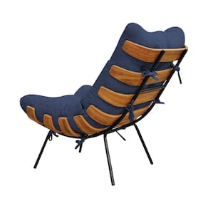 Poltrona Costela com Puff em Linho Azul