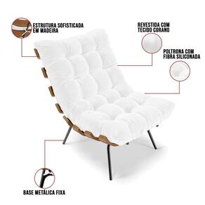 Poltrona Costela, o nome se explica por si só não!? Seu design marcante remete às costelas do corpo humano, além de ser muito confortável. Uma peça perfeita para decorar sua sala de estar. Sua estrutura em metal, assento e encosto em madeira, as almofadas são super macias, em detalhes capitonê com fibra siliconada, revestido no tecido Corano. Fala aí se não é perfeita para valorizar o seu espaço! Que tal deixar seu cantinho de descanso mais aconchegante e com muita elegância? Escolha já a sua.