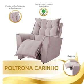 Poltrona Da Mamãe Reclinável Carinho Veludo Star Confort Rose A poltrona Carinho e um movel versatil e confortavel, com estofamento macio e apoios acolchoados. Com um Design todo pensado em seu conforto, tanto para ler um livro, assistir TV ou simplesmente relaxar. Sua capacidade de reclinar em diferentes posicoes proporcionam relaxamento maximo. Com um design elegante e recursos praticos, e perfeita para qualquer ambiente. A GARANTIA E DE FABRICA Comprando conosco, alem das vantagens em adquirir um produto de qualidade e sofisticacao, se eventualmente o mesmo apresentar algum problema, dentro do prazo de noventa dias, por sermos os fabricantes, te daremos total assistencia. Queremos lhe proporcionar uma experiencia agradavel com a compra e a certeza de estar negociando com uma empresa que preza acima de tudo, pela relacao de confianca com o cliente, nossa maior satisfacao.