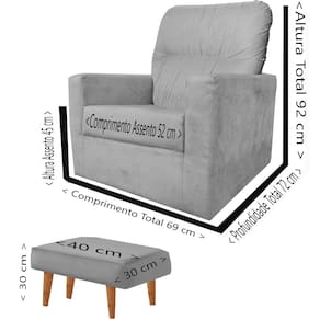 Medidas Da Poltrona Altura - Total = 92 cm Altura Assento= 45 cm Profundidade Total = 72 cm Comprimento Total = 68 cm Comprimento Assento = 52 cm