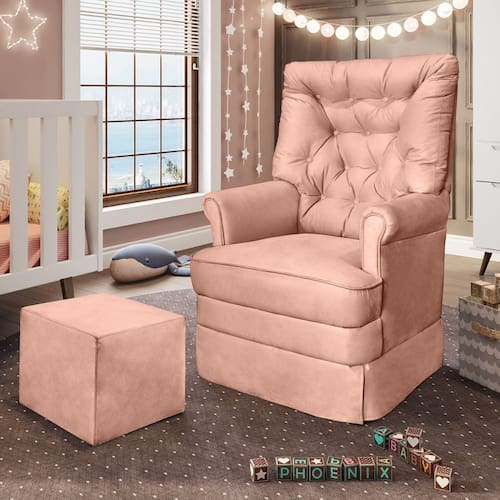 Poltrona de Amamentação Alana com Puff Veludo Phoenix Baby - Rosa