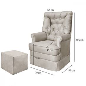 A Poltrona Amamentação Alana Balanço, acompanhada de um puff, oferece o conforto e a beleza que você e seu bebê merecem. Fabricada com material de alta qualidade, a poltrona é equipada com proteção contra mofo e cupins, garantindo durabilidade e segurança. Seu estofado, revestido por um tecido de toque suave, proporciona um aconchego especial, tornando os momentos de amamentação ainda mais agradáveis e relaxantes.