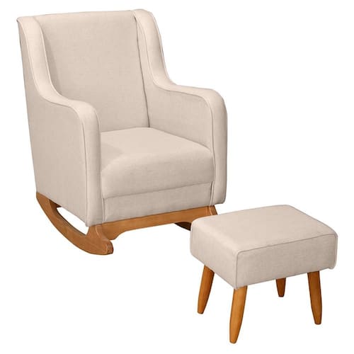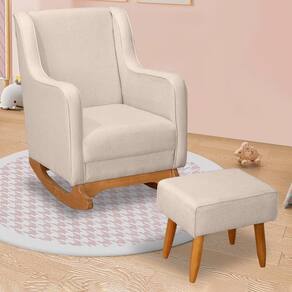 A Poltrona de Amamentação Áquila com Balanço Pé Canoa e Puff é ideal para proporcionar conforto nos momentos mais especiais com o bebê. Com estrutura em madeira de eucalipto e espuma D-23, oferece maciez e firmeza na medida certa. Possui balanço suave com pés tipo canoa e assento com percintas elásticas de alta resistência. Acompanha puff com pés retrô, complementando o aconchego e a funcionalidade, suporta até 120kg.