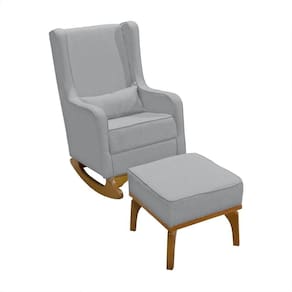 Poltrona De Amamentação Aquila Retro Com Puff Élpis Móveis Linho Cinza