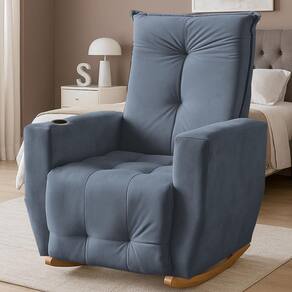 A poltrona possui um balanço suave em sua base, e um encosto alto com espuma de excelente densidade e estrutura sólida de madeira.