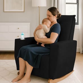 Feita com matéria-prima de alta qualidade a poltrona possui estofado revestido por tecido de toque suave que proporciona aconchego para os momentos de amamentação.