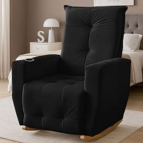 A poltrona possui um balanço suave em sua base, e um encosto alto com espuma de excelente densidade e estrutura sólida de madeira.
