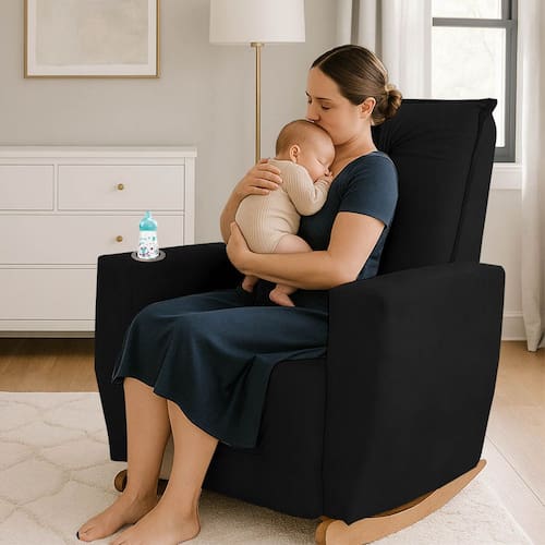Poltrona Agatha amamentação proporciona todo o conforto e aconchego que a família precisa nesta fase tão especial, e encanta pelo seu estilo sofisticado. Feita com matéria-prima de alta qualidade a poltrona possui estofado revestido por tecido de toque suave que proporciona aconchego para os momentos de amamentação. O puff quadrado traz conforto e beleza para a rotina da mamãe, e ajuda no descanso para pernas e pés tornando o momento ainda mais confortável. A poltrona possui um balanço suave em sua base, e um encosto alto com espuma de excelente densidade e estrutura sólida de madeira.