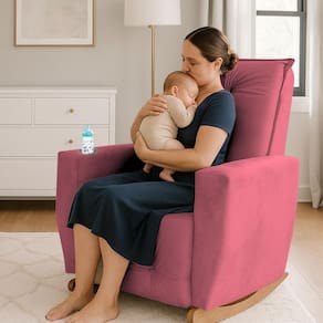 Poltrona Agatha amamentação proporciona todo o conforto e aconchego que a família precisa nesta fase tão especial, e encanta pelo seu estilo sofisticado. Feita com matéria-prima de alta qualidade a poltrona possui estofado revestido por tecido de toque suave que proporciona aconchego para os momentos de amamentação. O puff quadrado traz conforto e beleza para a rotina da mamãe, e ajuda no descanso para pernas e pés tornando o momento ainda mais confortável. A poltrona possui um balanço suave em sua base, e um encosto alto com espuma de excelente densidade e estrutura sólida de madeira.
