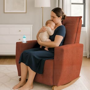 Feita com matéria-prima de alta qualidade a poltrona possui estofado revestido por tecido de toque suave que proporciona aconchego para os momentos de amamentação.