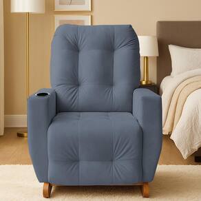 A poltrona possui um balanço suave em sua base, e um encosto alto com espuma de excelente densidade e estrutura sólida de madeira.