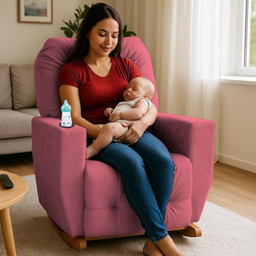 Poltrona de Amamentação Balanço Antonella Puff Rosa