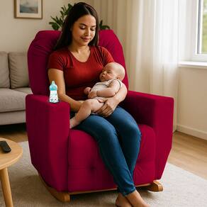 Feita com matéria-prima de alta qualidade a poltrona possui estofado revestido por tecido de toque suave que proporciona aconchego para os momentos de amamentação.