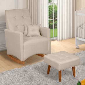 A Poltrona de Amamentação base de balanço e Puff é um móvel essencial para deixar o quarto do seu bebê lindo e aconchegante. Produzida com madeira de pinus/eucalipto reflorestada com imunização contra mofo, cupim e microrganismos, tudo isso para manter a integridade da saúde do bebê, além disso conta com travamento da estrutura com grampos em aço galvanizado. Com a Poltrona Ana aquele momento especial de amamentar ou fazer seu bebê dormir será ainda mais confortável. EspecificaçõesDimensões do ProdutoLargura: 68 cm.Altura: 98 cm.Profundidade: 83 cm.Peso: 20 Kg.Outras MedidasLargura do Assento: 53 cm.Altura até o Assento: 48 cm.Altura do Encosto: 60 cm.Profundidade do Assento: 52 cm.Importante: Por se tratar de estofado as medidas podem ter uma pequena variação.Dimensões do Puff (L x A x P): 40 x 40 x 35 cm.Características do Produto Material da Estrutura: Pinus e eucalipto de reflorestamento.Material de Enchimento: FibraRevestimento: Suede Peso Suportado: Até 120 Kg.Tipo de Encosto: Fixo.Tipo de Assento: Fixo. Entrega e Montagem: