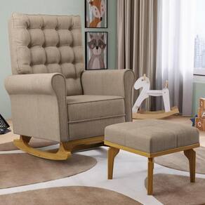 O móvel ideal para você que procura conforto, qualidade e sofisticação. Confira a Poltrona de Amamentação Balanço e Puff Base de Madeira Brenda G05 Linho Areia, da Mpozenato!
