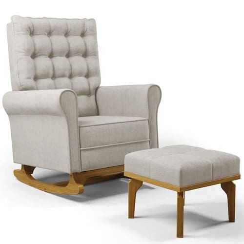 O móvel ideal para você que procura conforto, qualidade e sofisticação. Confira a Poltrona de Amamentação Balanço e Puff Base de Madeira Brenda G05 Linho Bege, da Mpozenato!