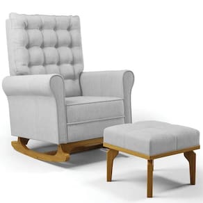 O móvel ideal para você que procura conforto, qualidade e sofisticação. Confira a Poltrona de Amamentação Balanço e Puff Base de Madeira Brenda G05 Linho Cinza, da Mpozenato!