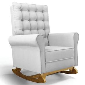 Uma Poltrona de Balanço feita com materiais de alta qualidade, estrutura em madeira de eucalipto, o tecido linho macio e resistente, e a espuma D23 a densidade ideal para o seu conforto, base em madeira com um lindo design e balanço suave, que ajuda a relaxar e a embalar o sono do seu bebê. O Kit Poltrona e Puff possui um design moderno e sofisticado, com detalhes em botonê revestido no encosto, que dão um toque de charme e elegância ao ambiente. A Poltrona de Amamentação também acompanha um puff pés madeira tecido linho, que serve como apoio para os pés ou como assento extra. O puff tem o mesmo acabamento da poltrona, criando um conjunto harmonioso e bonito.