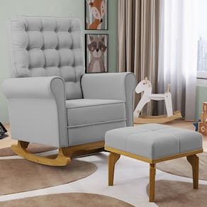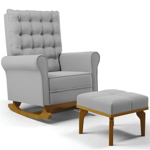 O móvel ideal para você que procura conforto, qualidade e sofisticação. Confira a Poltrona de Amamentação Balanço e Puff Base de Madeira Brenda G05 Veludo Cinza, da Mpozenato!