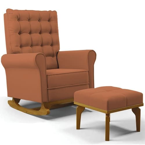 O móvel ideal para você que procura conforto, qualidade e sofisticação. Confira a Poltrona de Amamentação Balanço e Puff Base de Madeira Brenda G05 Veludo Terracota, da Mpozenato!
