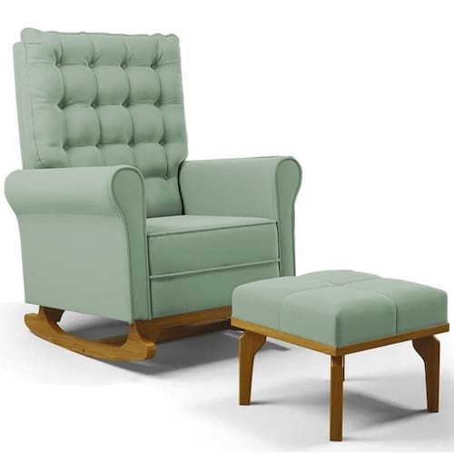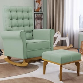 O móvel ideal para você que procura conforto, qualidade e sofisticação. Confira a Poltrona de Amamentação Balanço e Puff Base de Madeira Brenda G05 Veludo Verde, da Mpozenato!