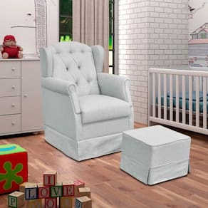 A Poltrona de Amamentação Balanço e Puff Lívia Linho da Mpozenato, é bonita e útil na hora de amamentar seu bebê, possui assento em espuma D-23 com tratamento anti-mofo que garante maior conforto e durabilidade ao produto. Conta com sistema de balanço diferenciado em madeira com molas fixado com parafusos, percintas elásticas de 50 mm, travamento da estrutura com grampos em aço galvanizados, suporta até 110 kg e conta com revestimento em linho de excelente qualidade. Uma maravilha, né?
