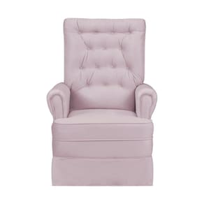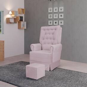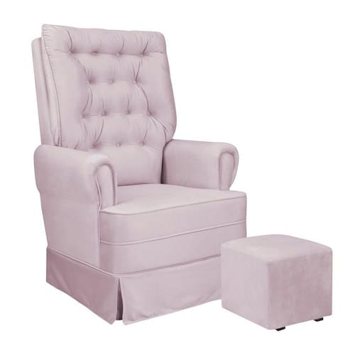 Poltrona De Amamentação Balanço E Puff Veludo Eloisa rosa