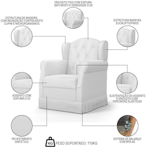 Peso Suportado: 3 kg por prateleira/110 Kg na Poltrona.