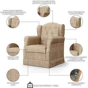 Poltrona de Amamentação Balanço Letícia Linho Bege Escuro - Phoenix