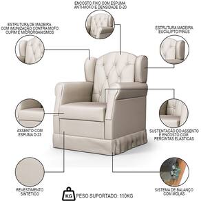 A Poltrona de Amamentação Balanço Letícia Sintético Bege - Phoenix Baby é um móvel que alia conforto e design. Fabricada em madeira de Eucalipto de Reflorestamento, ela possui uma estrutura resistente e durável. Sua espuma D-20 e D-23 proporciona um conforto extra para os momentos de descanso e amamentação. O Balanço é um diferencial que ajuda a relaxar e acalmar tanto a mãe quanto o bebê. Além disso, o revestimento Sintético é fácil de limpar e manter, tornando a poltrona ainda mais prática e funcional. Com a Poltrona Letícia, a mamãe terá um cantinho especial para cuidar do seu bebê com todo o conforto e estilo que deseja. Compre já!