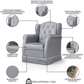 A Poltrona de Amamentação Balanço Letícia Sintético Cinza - Phoenix Baby é um móvel que alia conforto e design. Fabricada em madeira de Eucalipto de Reflorestamento, ela possui uma estrutura resistente e durável. Sua espuma D-20 e D-23 proporciona um conforto extra para os momentos de descanso e amamentação. O Balanço é um diferencial que ajuda a relaxar e acalmar tanto a mãe quanto o bebê. Além disso, o revestimento Sintético é fácil de limpar e manter, tornando a poltrona ainda mais prática e funcional. Com a Poltrona Letícia, a mamãe terá um cantinho especial para cuidar do seu bebê com todo o conforto e estilo que deseja. Compre já!