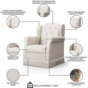 A Poltrona de Amamentação Balanço Letícia P04 Suede Bege - Phoenix Baby é um móvel que alia conforto e design. Fabricada em madeira de Eucalipto de Reflorestamento, ela possui uma estrutura resistente e durável. Sua espuma D-20 e D-23 proporciona um conforto extra para os momentos de descanso e amamentação. O Balanço é um diferencial que ajuda a relaxar e acalmar tanto a mãe quanto o bebê. Além disso, o revestimento Suede é um tecido macio e agradável ao toque, que agrega modernidade e aconchego ao ambiente. Com a Poltrona Letícia, a mamãe terá um cantinho especial para cuidar do seu bebê com todo o conforto e estilo que deseja. Compre já!