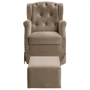 Poltrona De Amamentação Balanço Ternura Puff Veludo Castor - Cinza