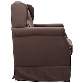 Conforto e Suavidade: A poltrona é estofada com Suede, um tecido suave e aconchegante que proporciona sensação de maciez e acolhimento.
