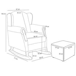 Outras Medidas: Largura Interna do Assento: 46 cm. Altura do Chão até o Assento: 42 cm. Altura do Encosto: 62 cm. Profundidade Interna do Assento: 50 cm. Altura do Braço: 19 cm. Puff: 37 x 35 x 37 cm.