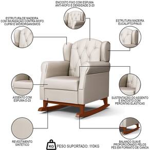 Madeira Eucalipto/PinusA Poltrona de Amamentação Base Madeira Balanço Lucy P04 Sintético Bege Mpozenato é a escolha ideal para as mamães que buscam conforto, beleza e qualidade. Ela possui uma estrutura de madeira de reflorestamento com imunização contra mofo, cupim e microrganismos, garantindo maior durabilidade e resistência. A sustentação do assento e encosto é feita com percintas elásticas que proporcionam mais maciez e ergonomia. O Tecido Sintético é fácil de limpar e tem um toque suave na pele. A base canoa com balanço permite um movimento suave e relaxante, ideal para ninar o bebê ou descansar após um dia cansativo. A poltrona tem um design moderno e elegante que combina com qualquer ambiente. Ela está disponível em para você escolher a que mais combina com o seu estilo. Não perca essa oportunidade de ter uma Poltrona de Amamentação e Descanso na sua casa. Você vai se surpreender com o conforto e a qualidade dessa poltrona. Compre já!