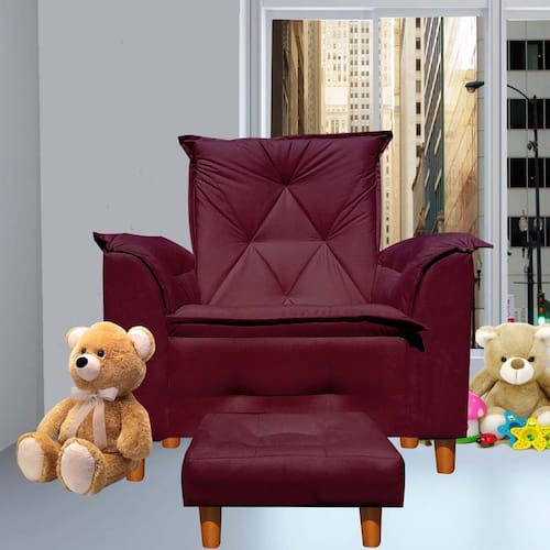 Poltrona De Amamentação Celine Com Puff Suede Bordo - Bordô